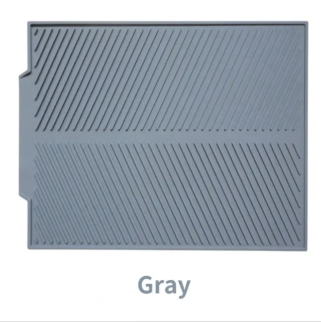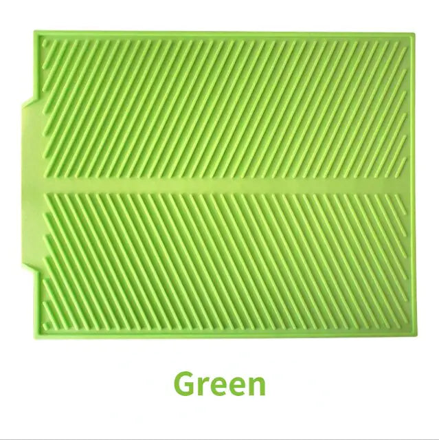 Diga adiós a las encimeras empapadas y hola al secado sin esfuerzo con nuestra espaciosa alfombrilla para escurridor. Con un tamaño perfecto de 43*33 cm, esta maravilla de silicona protege sus superficies del calor y proporciona un agarre antideslizante para sus platos. Deje fluir su creatividad en la cocina sin preocuparse por el desorden o los resbalones: ¡nuestro tapete para secar platos lo tiene cubierto!