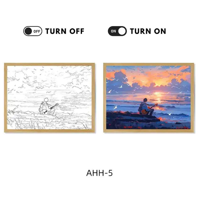 Transforme su espacio con el encanto cautivador de nuestra luz ambiental con iluminación cálida estilo cómic. Ya sea exhibida como pieza decorativa independiente o combinada con otros elementos decorativos, esta pintura luminosa agrega un toque de personalidad y estilo a cualquier habitación. ¡Experimente la magia de la iluminación inspirada en los cómics y mejore la decoración de su hogar hoy!