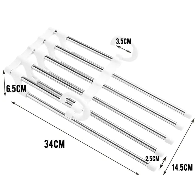 Presentamos nuestros innovadores colgadores para pantalones Space Saver: ¡la solución perfecta para organizar tus jeans, pantalones, corbatas, bufandas y más! Con la capacidad de colgar hasta 5 prendas a la vez, estas perchas transformarán tu guardarropa, ahorrándote al menos un 80% de espacio y manteniendo todo limpio y ordenado.