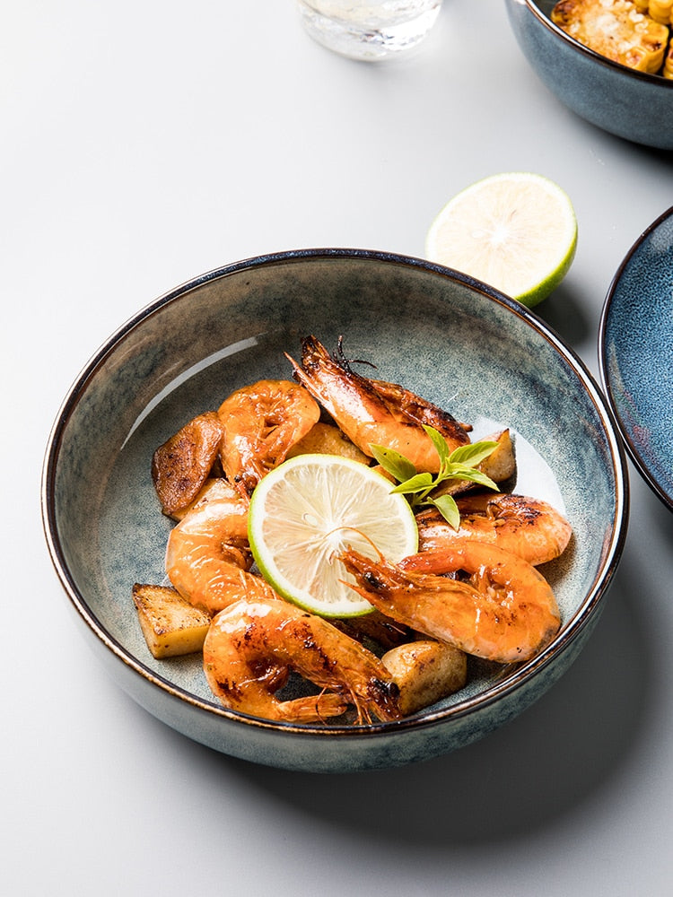 Cuenco nórdico retro de cerámica para ensalada y fideos - Diseño de plato hondo