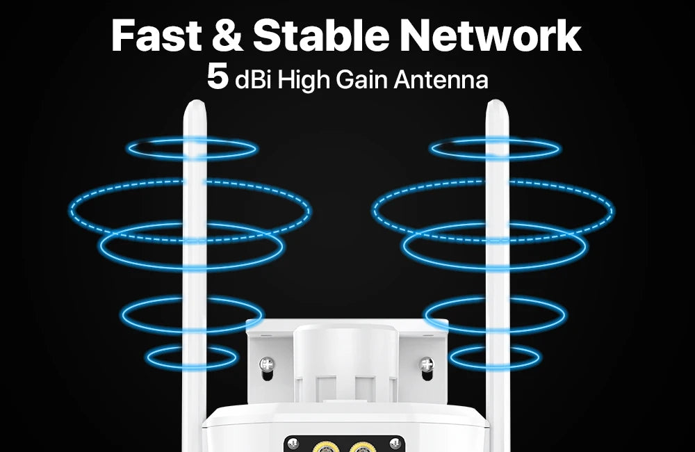 Equipped with an enhanced 5dBi high-gain external antenna, your camera can receive a wider range of signals.