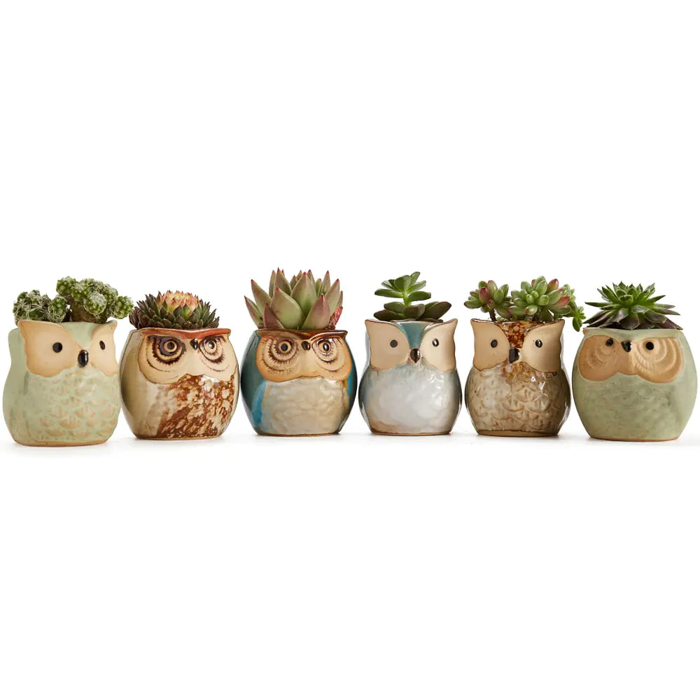 6-Piece Owl Pot Ceramic Glaze Base Set: Bring a Whimsical Touch to Your Home!