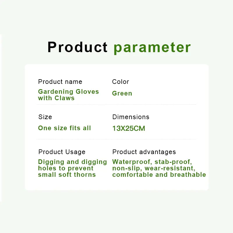 With their vibrant and eye-catching design, our Garden Gloves with Claw add a touch of fun and personality to your gardening routine. Whether you're a seasoned gardener with a passion for plants or a beginner looking to cultivate your green thumb, these gloves are sure to become your go-to gardening companion.