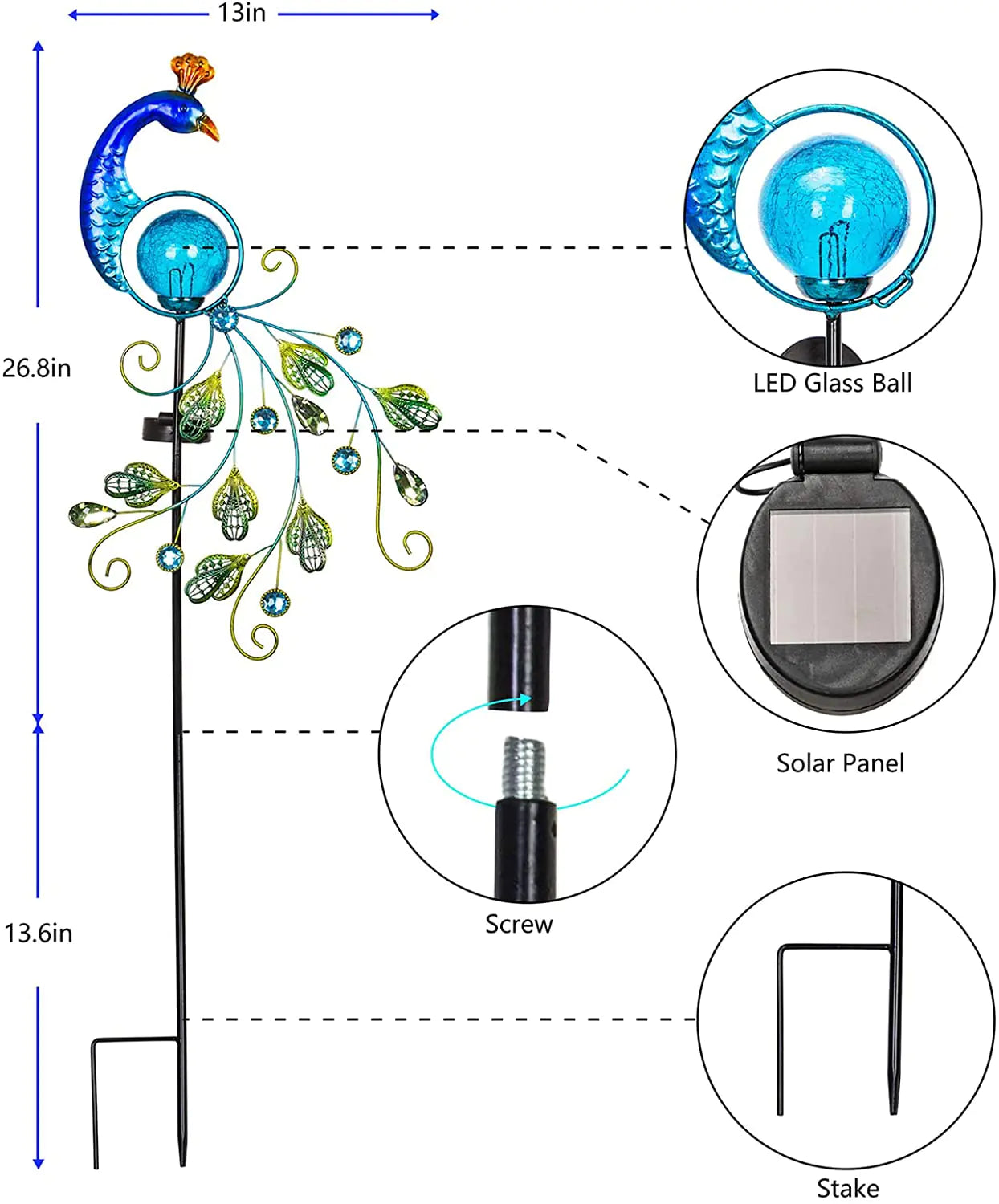 Illuminate your outdoor space with the enchanting radiance of the Glorious Peacock Solar Light. Crafted to captivate, this majestic solar light brings a touch of elegance and charm to any garden or pathway. With its intricate peacock design and vibrant colors, this solar light stands as a stunning centerpiece, both day and night. By harnessing the power of the sun, it charges during the day to cast a mesmerizing glow throughout the night, creating a magical ambiance that transforms your outdoor oasis. Let the Glorious Peacock Solar Light be the crowning jewel of your outdoor decor, adding a touch of beauty and brilliance to every corner of your garden. Illuminate your nights with grace and style, courtesy of this exquisite solar light.