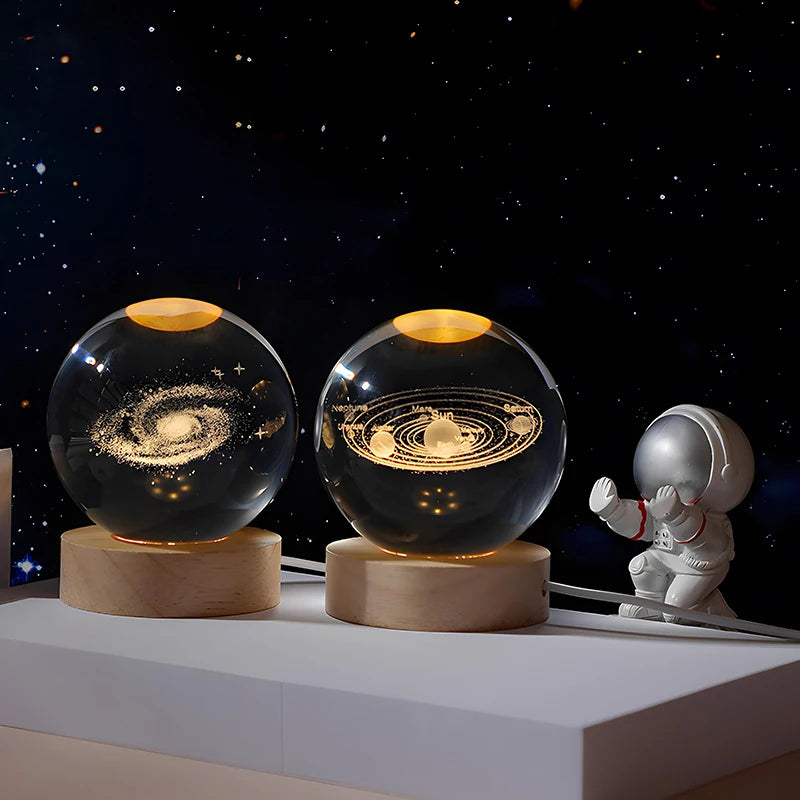 System Crystal Ball Children USB Night Lamp Bedroom Ambient Light 3D Planet Moon Lamp Creative Gift