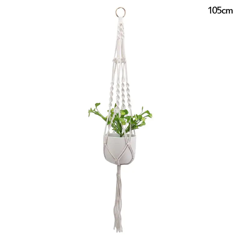 Invite the beauty of nature into your home with our handcrafted macrame plant hanger. Designed to complement any decor style, this hanger effortlessly showcases your favorite plants while adding a touch of warmth and serenity to your surroundings. Embrace the natural beauty of indoor gardening with this exquisite piece.