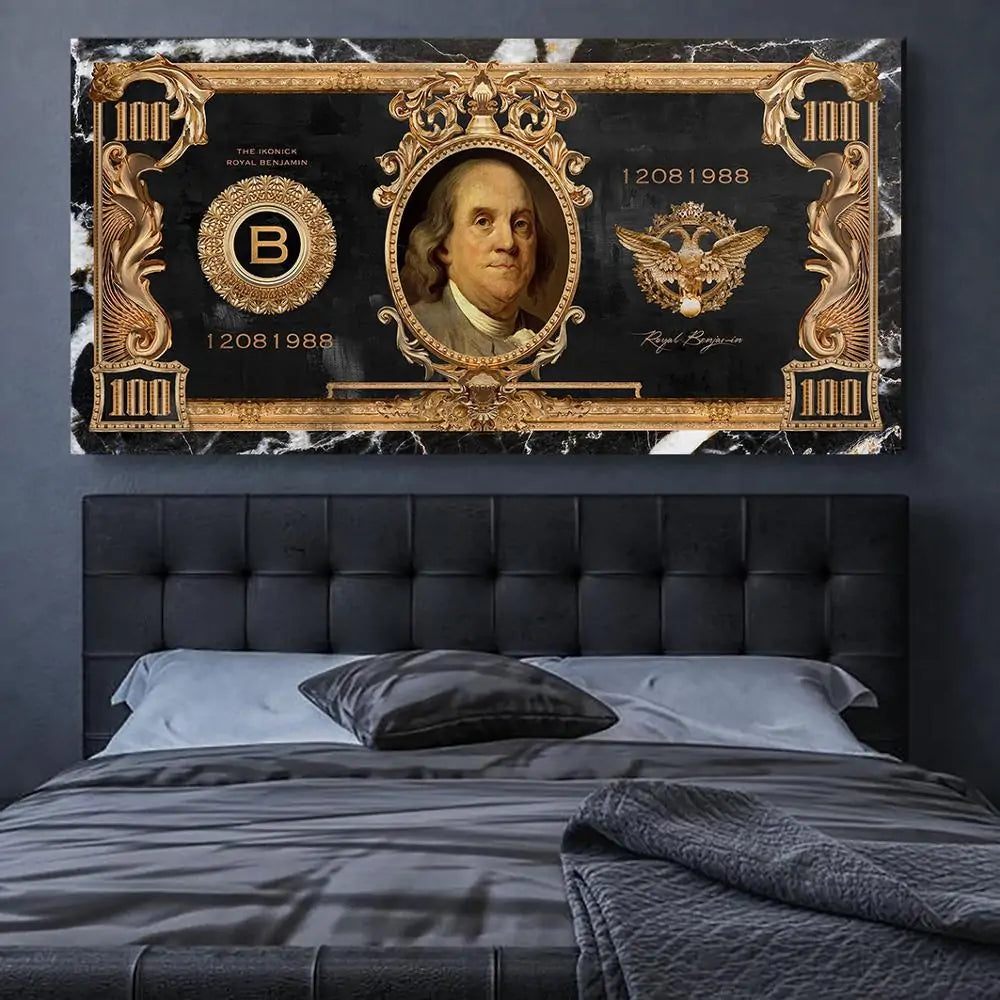 Elevate your space with the opulence and intrigue of our ROYAL BENJAMIN Money Abstract Posters. Each piece is a canvas artwork that masterfully blends the allure of abstract art with the bold themes of finance. These striking posters offer a contemporary twist on traditional décor, making them perfect for anyone looking to add a touch of sophistication and a dash of modern flair to their environment. Whether you're decorating a home office, a living room, or a corporate space, these canvas artworks capture attention and spark conversations, making them a must-have for collectors and enthusiasts alike.